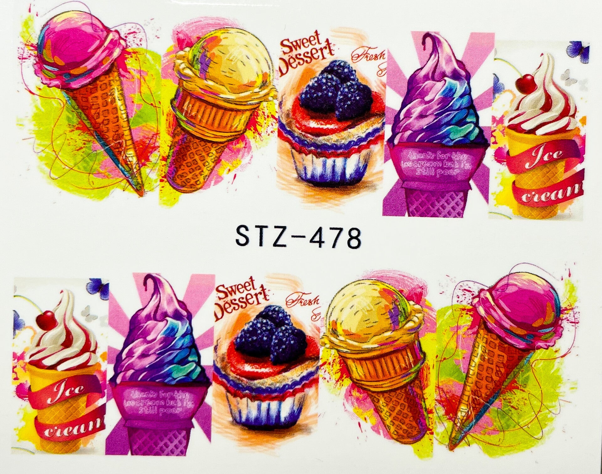 Passendes Muster mit einer Schere vorsichtig rausschneiden und das Motiv in ein Behälter mit Wasser für ca. 15 Sekunden eintauchen. Danach tupfe das Muster auf einer Zellette ab und bringe das Design direkt auf den Nagel (ohne Schwitztschicht) leicht andrücken. Zum Schluss mit dem Gel/Top-Coat versiegeln.